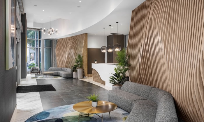 CREATE+CO reimagined The Element Amenity Spaces in Tampa, blending sculptural design with warm materials to foster an inviting atmosphere that enhances community connections for residents and guests.