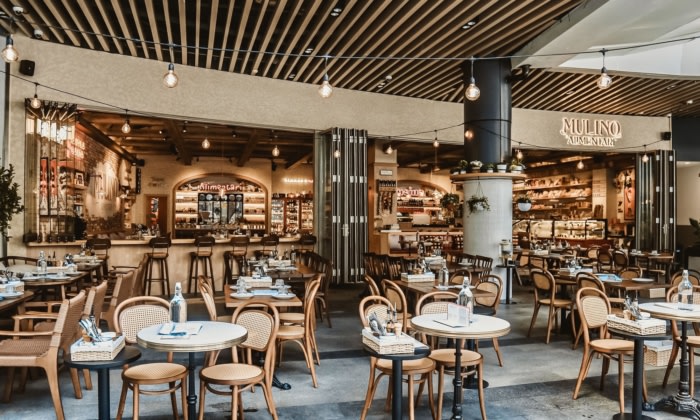 Riccardo Rubelli Architetto’s Alimentari Mulino in Shenzhen artfully blends rustic Italian countryside aesthetics with modern industrial design, creating a warm, inviting space that celebrates gourmet dining and community connection.