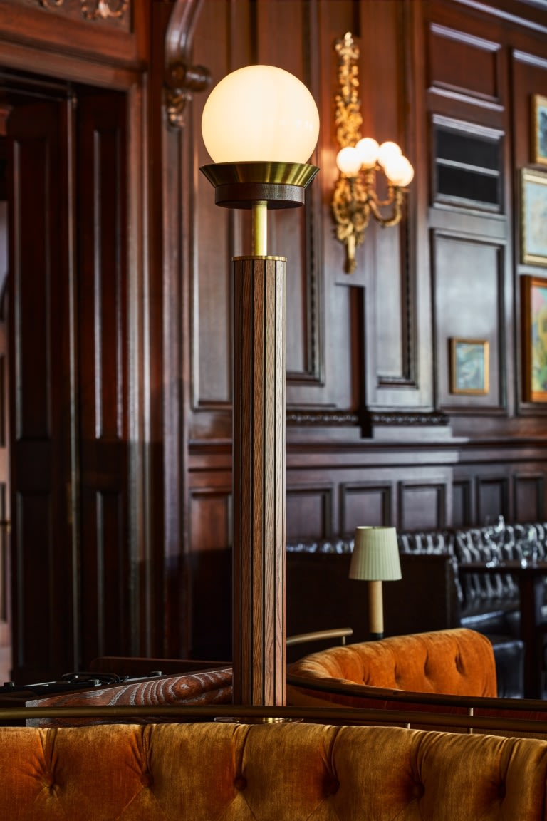 Le Cavalier at The Green Room at HOTEL DU PONT View Project Stokes Architecture + Design Jason Varney Details, Floor Lamp, Sconce, Table Lamp