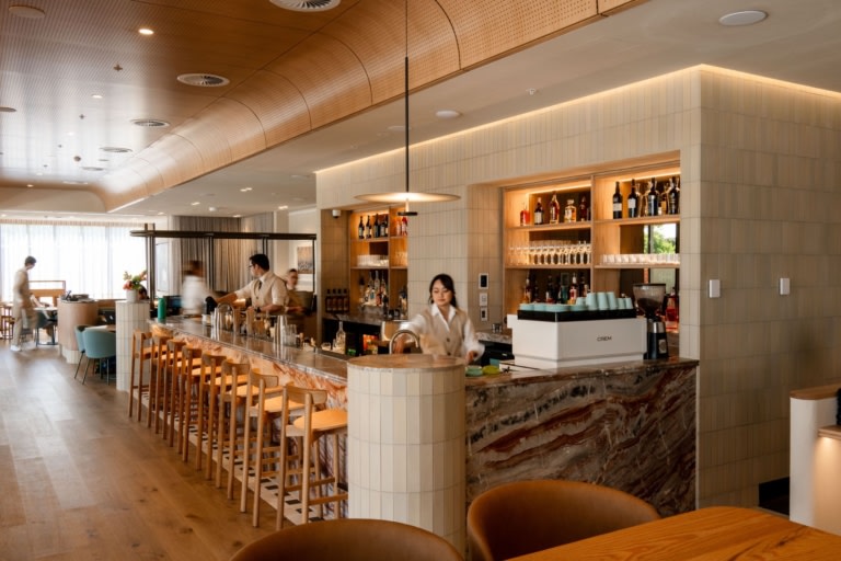 Station Road (STN-RD) Restaurant View Project Studio Nine Architects Jack Fenby Flat by Vibia Bar, people