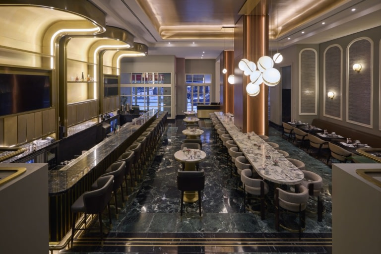 Sofitel New York View Project HBA Noah Webb Banquette Seating, Bar / Counter Seating, Dining Area, dining-table