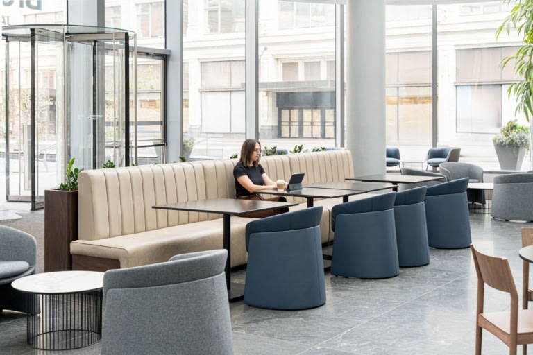 Brookfield Place – Main Floor and +15 Common Areas View Project Block Licensed Interior Design Inc. Lindsay Nichols Seba Lounge by Davis FurnitureSeba by Davis Furniture Banquette Seating, Lobby / Common Area, Lounge Seating
