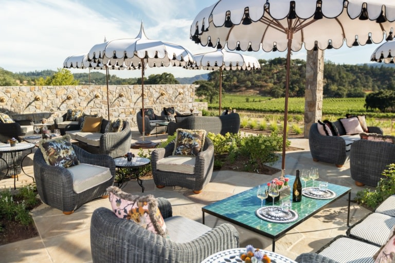 Lewis Cellars Tasting Room View Project The Wonderful Company Jamie Mercurio Dining Area, Lounge Seating, Patio / Terrace