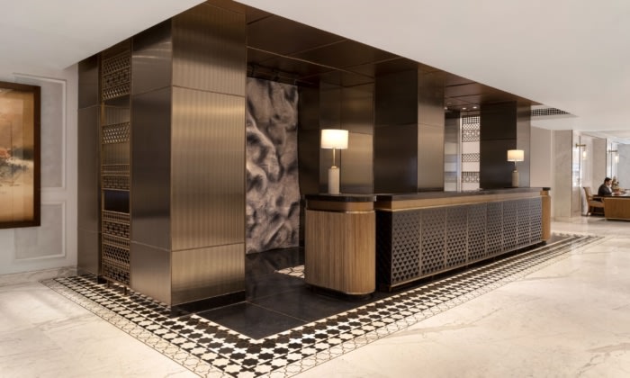 The original lobby design felt enclosed and outdated, with a limiting column grid of just four-meter spacing, massive columns, and a single-floor height that restricted visual and spatial openness. Poor natural light and ventilation further impacted the ambience, while the centrally placed reception desk obstructed movement, making circulation inefficient. Additionally, the bar area remained underutilised due to its hidden placement, and the interiors, with mirrored columns and outdated elements, lacked the refinement associated with the modern hospitality experience. The redesign aimed to address these challenges by introducing a more fluid layout, enhancing visual connection, and elevating the overall sense of arrival.