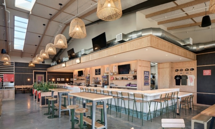 Loro Asian Smokehouse & Bar transforms a former neighborhood auto body shop into a vibrant dining destination that blends industrial edge with organic warmth. Abel Design Group provided exterior building and patio design, collaborated with Hai Hospitality on the interiors, and handled documentation for permitting and construction. The adaptive reuse project incorporates contemporary metal wall panels, contrasting wood tones, and drought-resistant native landscaping, with features like an expansive shaded patio with a walk-up outdoor bar, exposed structural trusses, and linear skylights flooding the interior with natural light. Black vertical wood siding, white oak window frames, and natural oak paneling balance the raw and refined, while the volumetric interior space—with open sightlines and high ceilings—encourages community connection. The result is a seamless flow between indoor and outdoor spaces, creating an inviting, neighborhood-focused landmark that reflects both the city’s energy and the restaurant’s ethos of balance and harmony.