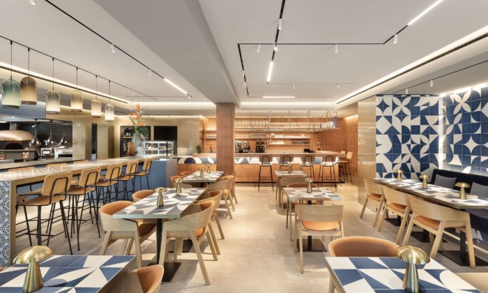 PLAJER + FRANZ’s Restaurant Tapata in Bad Orb masterfully blends authentic Mediterranean elements with contemporary design, creating a vibrant atmosphere that reflects southern hospitality and culinary artistry.