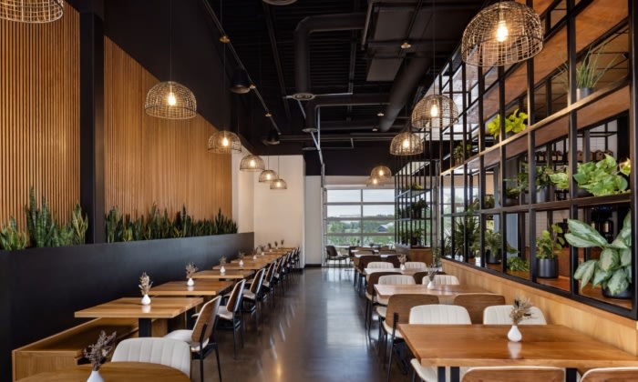 Abel Design Group, alongside Drift Design Studio, crafted MorninGlory Restaurant in Austin, creating a warm, inviting space that harmonizes natural materials with the local family-oriented atmosphere.