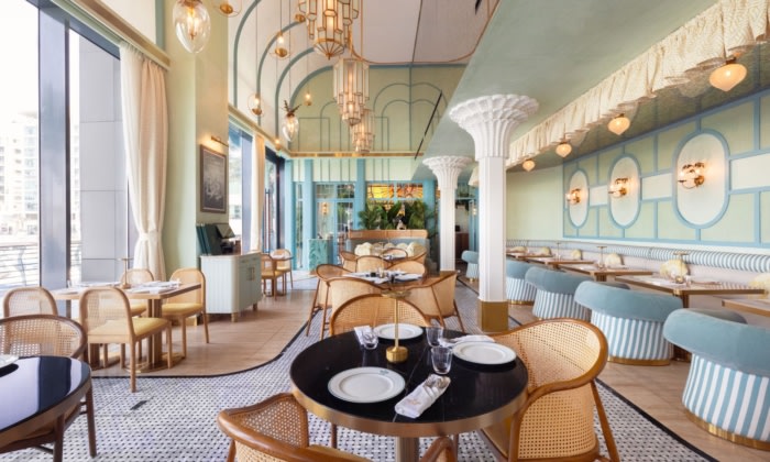 DLSM Studio’s The Pelican Club in Bahrain Financial Harbour redefines Gulf brasserie dining through its vibrant, immersive design, blending Art Deco charm with tropical allure for a captivating social experience.