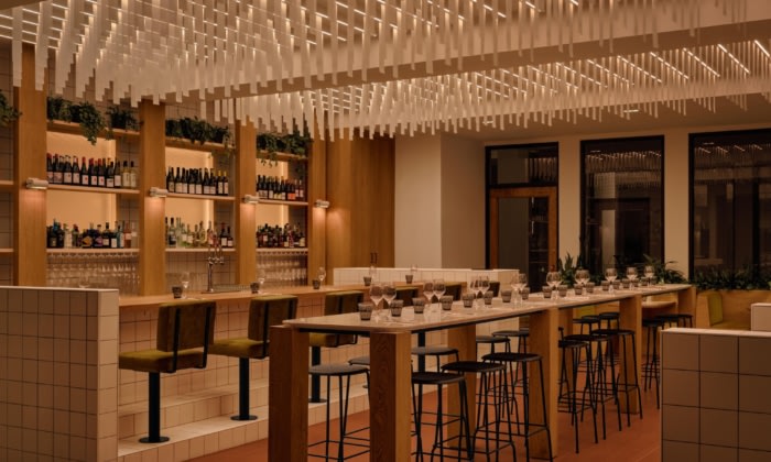 Blanchette archi.design’s Bistro Siège Social and Café Social in Longueuil revitalizes the 1960s corporate aesthetic into a contemporary hybrid space, fostering sociability and seamless connection within the community.